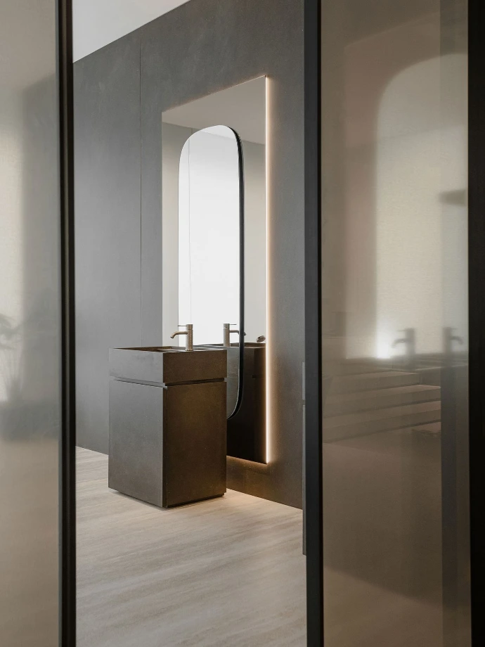 Layered architectural lighting enhances emotion and clarity, balancing general illumination with accent and display lighting to elevate every surface. Planned infographics and wayfinding map the user journey, ensuring the showroom is not only visually compelling but purpose driven. The result is a space that feels immersive yet straightforward, sophisticated yet accessible, a contemporary canvas designed to showcase innovation, craftsmanship, and leadership in material design.